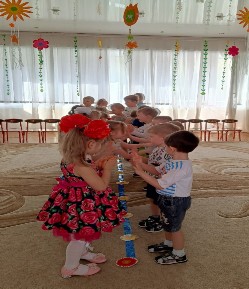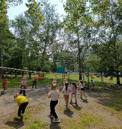 18 июня- Единый день летних видов спорта. Ребята соревновались в спортивных играх: пионерболе и бадминтоне, боулинге, в метании на дальность. Принималиучастие в эстафетах "Перенеси кегли", прыгали через скакалки, крутили обручи. Играли в подвижные игры "Рыбак и рыбки", "Не урони мяч".