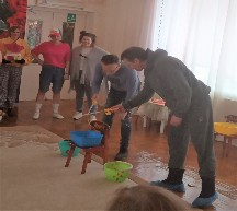 2 октября состоялось необычное мероприятие "Баттл шоу".Бабушка и дедушка соревновались с внуками и внучками.Кто кого перетанцует, перепоет, кто быстрее крупу переберет и клубочки смотает, кто больше рыбок наловит и загадок отгадает!Победила, конечно же, дружба!