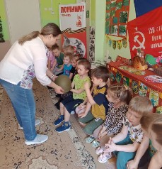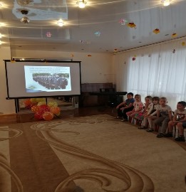 День Победы один из самых почитаемых праздников в нашей стране. 9 мая 1945 года уходит все дальше и дальше от нас, но мы по – прежнему помним, какой ценой досталась эта победа нашему народу, как любили, берегли и защищали ее наши предки, наши отцы и деды. Нельзя, чтобы наши дети забывали об этом. В преддверии празднования 79-летия Дня Победы в детскомсаду проходили мероприятия в рамках тематической недели «День Победы». Воспитатели рассказали детям о важных моментах нашей истории, доступно объяснили, что такое День Победы, почему мы так свято к нему относимся, почему это радостный праздник со слезами на глазах, почему нам нельзя его забывать. Так же ребята рассматривали иллюстрации, письма, открытки военной тематики. Была организована выставка рисунков "Дети выбирают мир". Интересным мероприятием стало тематическое занятие, посвященное Дню Победы: «Праздник памяти и славы». В программу мероприятия вошли песни "Катюша","Бравые солдаты", оркестр "Смуглянка", презентация о Дне Победы, марш Победы,стихи о войне, минута молчания.