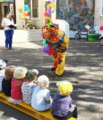 В первый день лета отмечается международный праздник – День защиты детей. Радостно, звонко, тепло и красочно прошёл главный праздник детства в детском саду. Мы постарались в этот день создать праздничную атмосферу и порадовать детей весёлыми играми, песнями, танцами. В гости к детям пришел клоун. Воспитанники вместе с клоуном участвовали в играх, пели песни о дружбе, танцевали. Закончился праздник зажигательным танцем и рисованием мелками на асфальте.